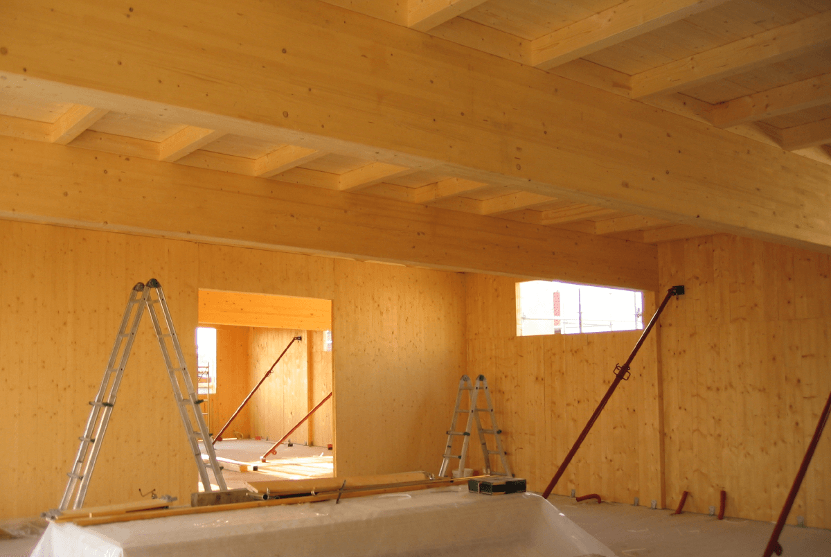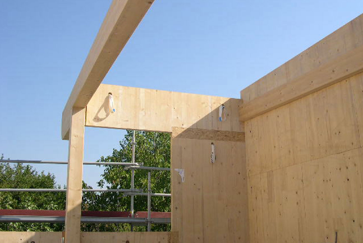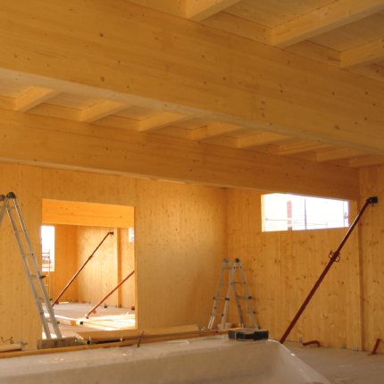 Pareti interne in legno lamellare massiccio di abete sp 81 mm a 3 strati incrociati c.s.