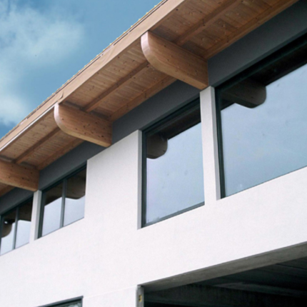 Struttura portante in legno lamellare massiccio di abete sp 85 mm a 5 strati incrociati assemblate in autoclave con colla vinilica.
