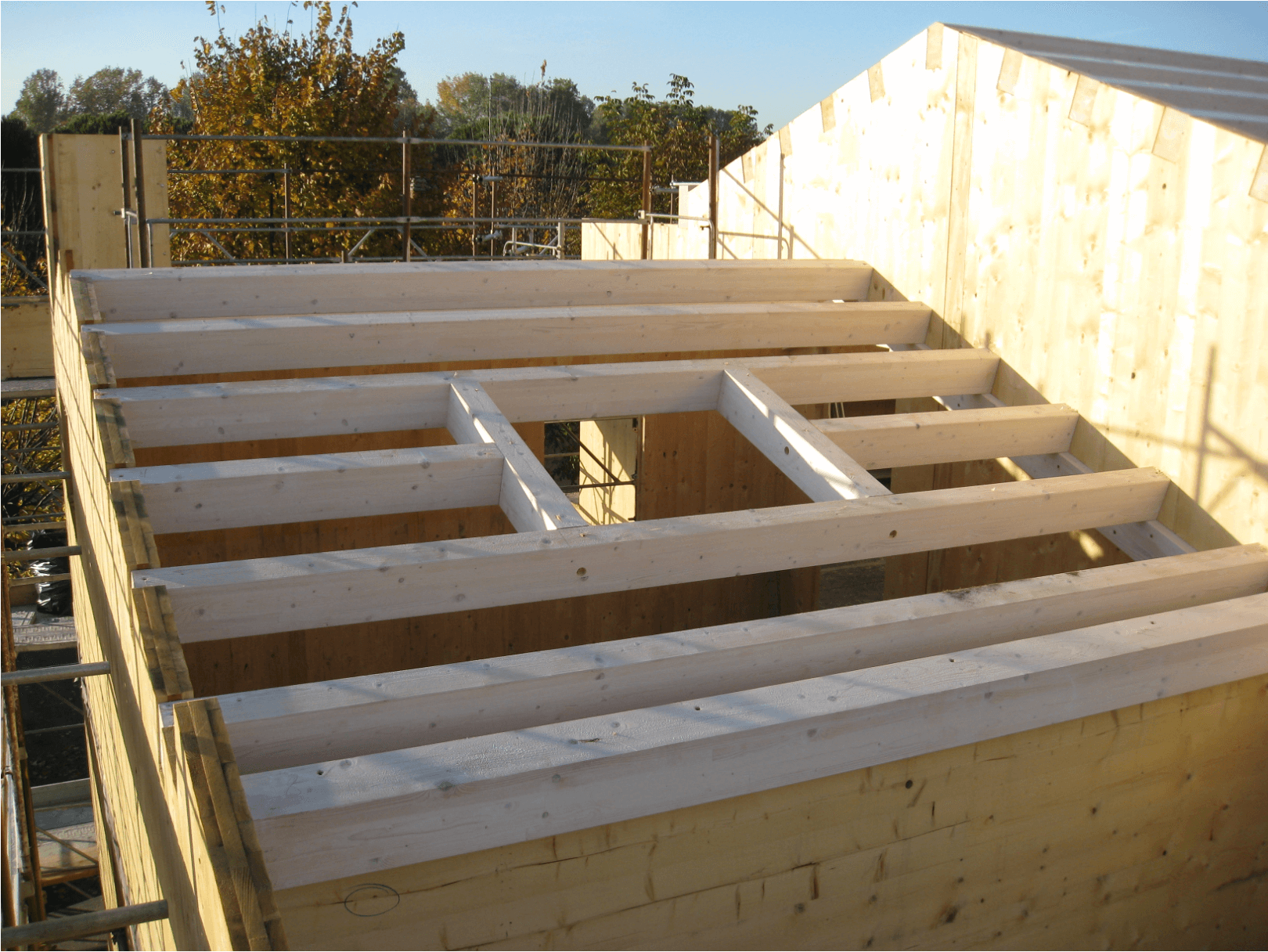 - Tetto piano: solaio in legno costituito da lastre in tavole incrociate e pacchetto isolante composto da lastre di polistirolo espanso Xps, U=0,17 W/m2 °K