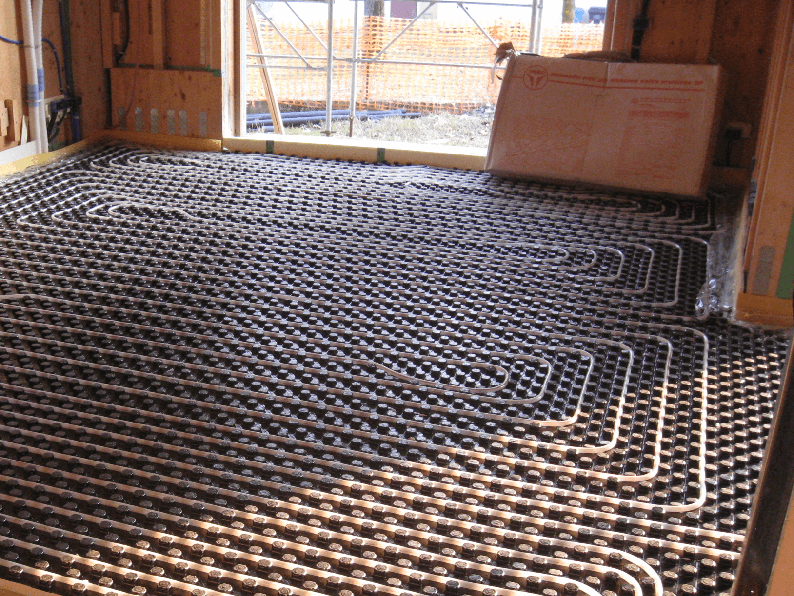 Impianto di condizionamento integrato all’impianto di riscaldamento utilizzando gli stessi pannelli radianti a pavimento e la stessa pompa di calore coadiuvato da sistema di controllo dell’umidità e deumidificazione con macchine motocondensanti gestite elettronicamente da sonde interne (umidostati).