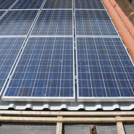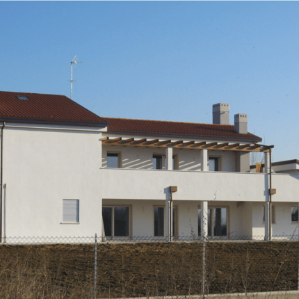 Consistente in impianto di produzione dell’energia elettrica da fonte rinnovabile tramite pannelli solari fotovoltaici (marca SANYO o equivalenti) sulla copertura del tipo integrati ed INVERTER adeguato fino ad una potenza massima di circa 3,89 Kwp.