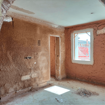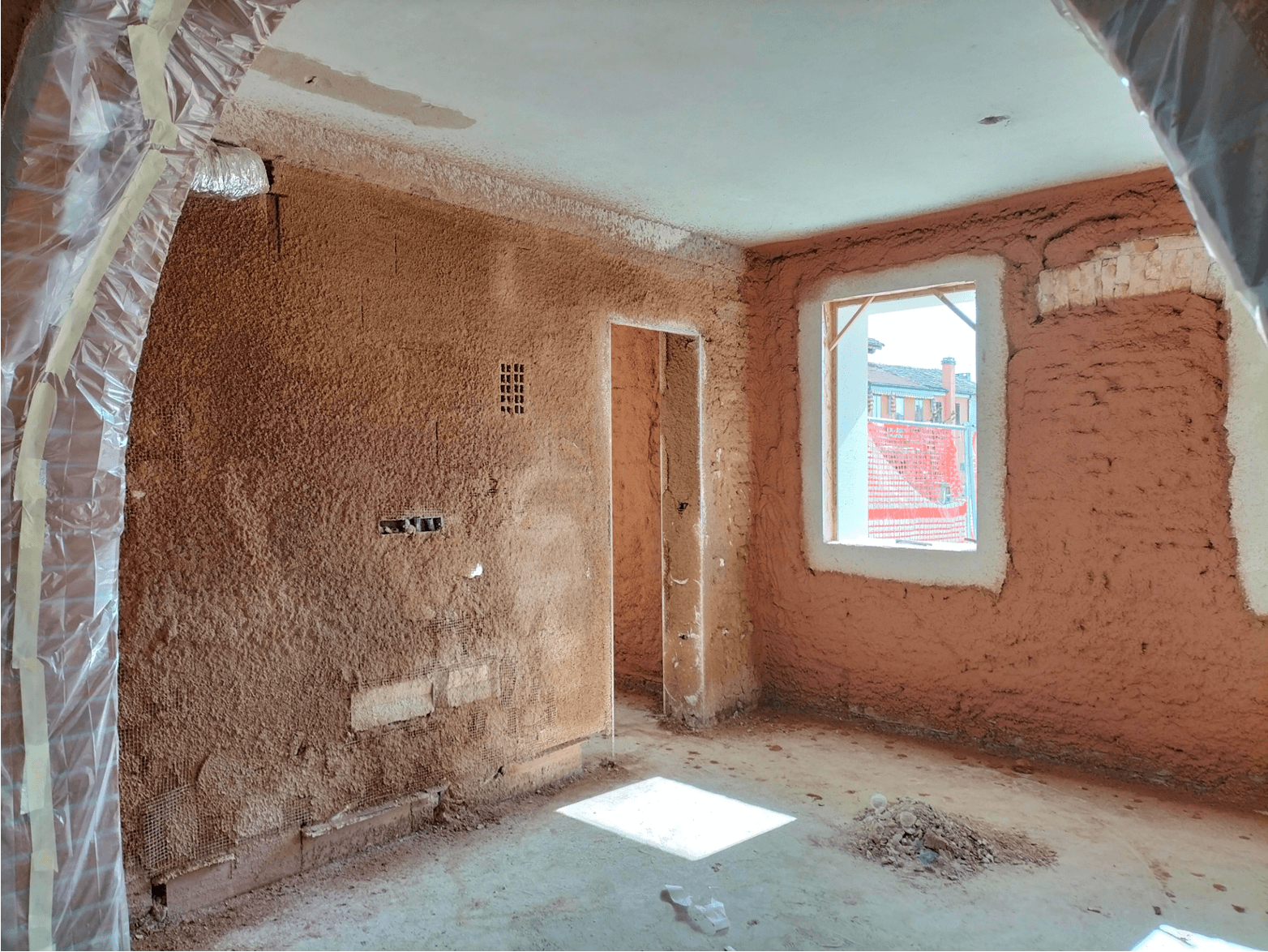 Restauro e ampliamento edificio con finiture in argilla cruda