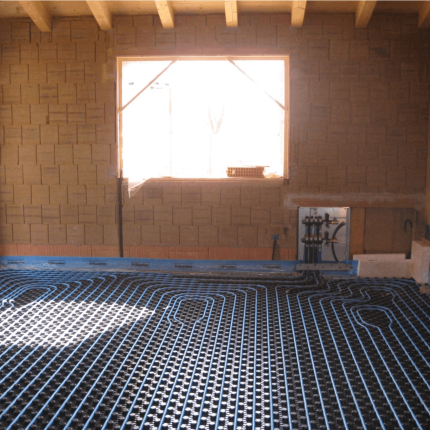 Pompa di Calore con produzione di acqua calda sanitaria e sistema di climatizzazione invernale ed estivo tramite ventilazione controllata canalizzata; pannelli solari termici per produzione ACS e pannelli solari fotovoltaici potenza totale 4,00 Kwp; impianto integrato di ventilazione aria primaria controllato;