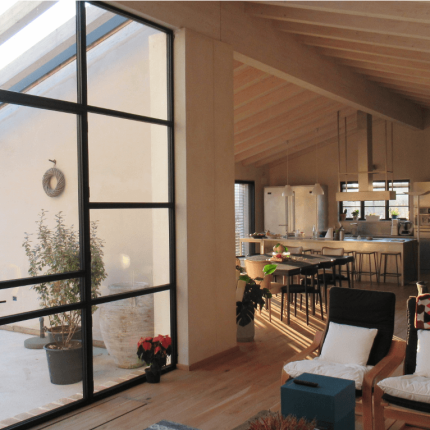 - Serramenti esterni: finestre in alluminio o legno e vetri con doppia camera basso emissivo, U=1,00 W/m2 °K